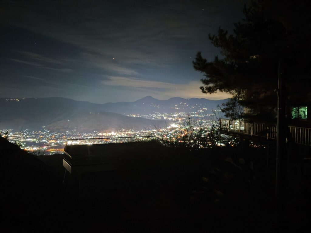 途中、杖突峠に再び訪れて諏訪地域の夜景を楽しんだ。やはり、山の上から見る夜景は都会のビルから見る夜景とはまた違った美しさがある。内心、都心は人が多すぎて静かなところがないから、こういう静寂に浸れる環境があるって、とても幸せなことなんだと思った。